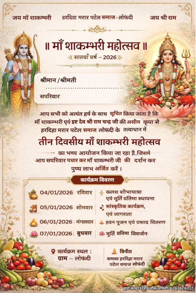 ग्राम लोफंदी में माँ शाकम्भरी महोत्सव 4 से, तीन दिन होंगे धार्मिक आयोजन |Maa Shakambhari Mahotsav: Three Days of Devotion in Lofandi from Jan 4